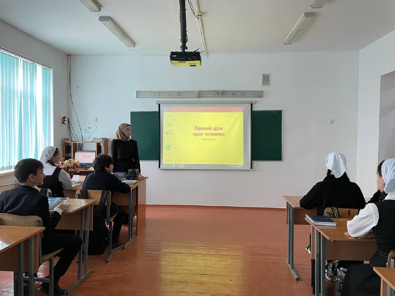 09.12.2025г. Учитель истоии и обществознании Вижаева Р.З. провела Всероссийский единый урок "Права человека" с обучающимися 8 класса.