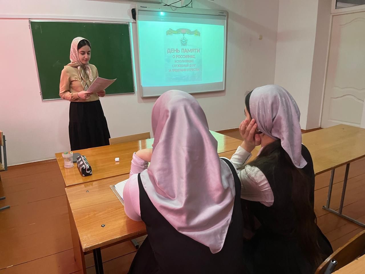15.02.2025Во взаимодействии с отделом в Ножай-Юртовском районе УФСБ России по Чеченской Республике 15 февраля в МБОУ «ООШ с. Мескеты» были проведены мероприятия посвященные дню памяти о россиянах, исполнявших служебный долг за пределами Отечества