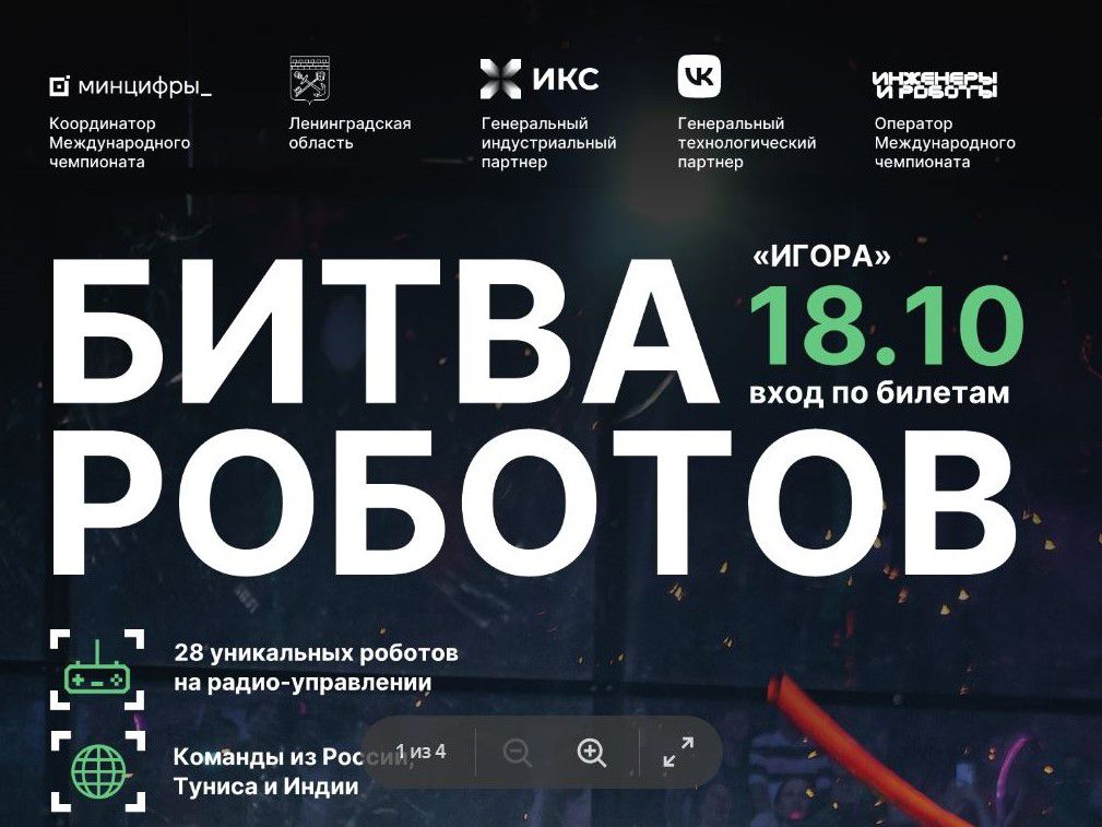 13.10.202518 октября пройдет третий отборочный этап Международного чемпионата по битве роботов сезона 2025 года. Цель Чемпионата – популяризация в Российской Федерации инженерной мысли как драйвера развития и поддержки современных цифровых технологий.
