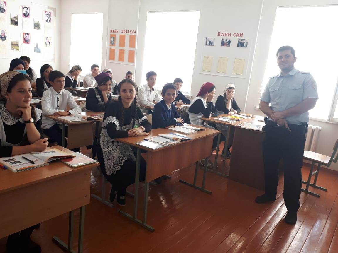 08.10.2018В школе была организована встреча обучающихся 8-9 классов, с инспектором ПДН Анасовым Хож-Ахмедом Висадиевичем.