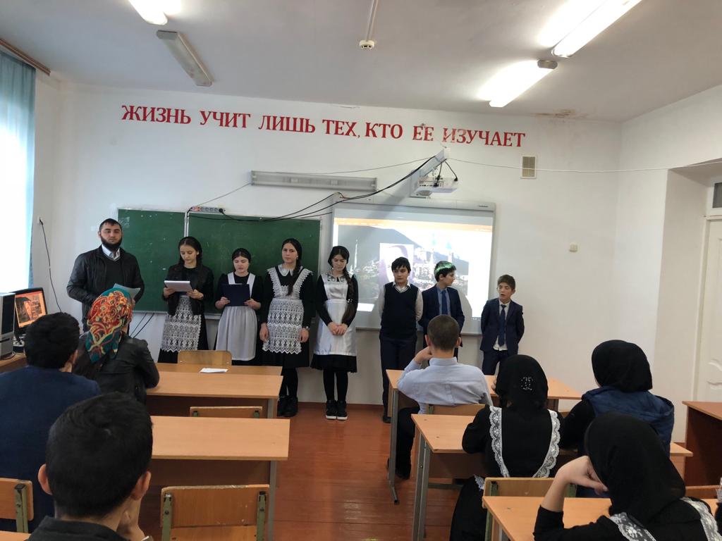 В 8-9 классах учителем чеченского языка и литературы Далхаевым А.Б. был проведен литературный вечер, посвященный 100-летию со дня рождения Арби Мамакаева