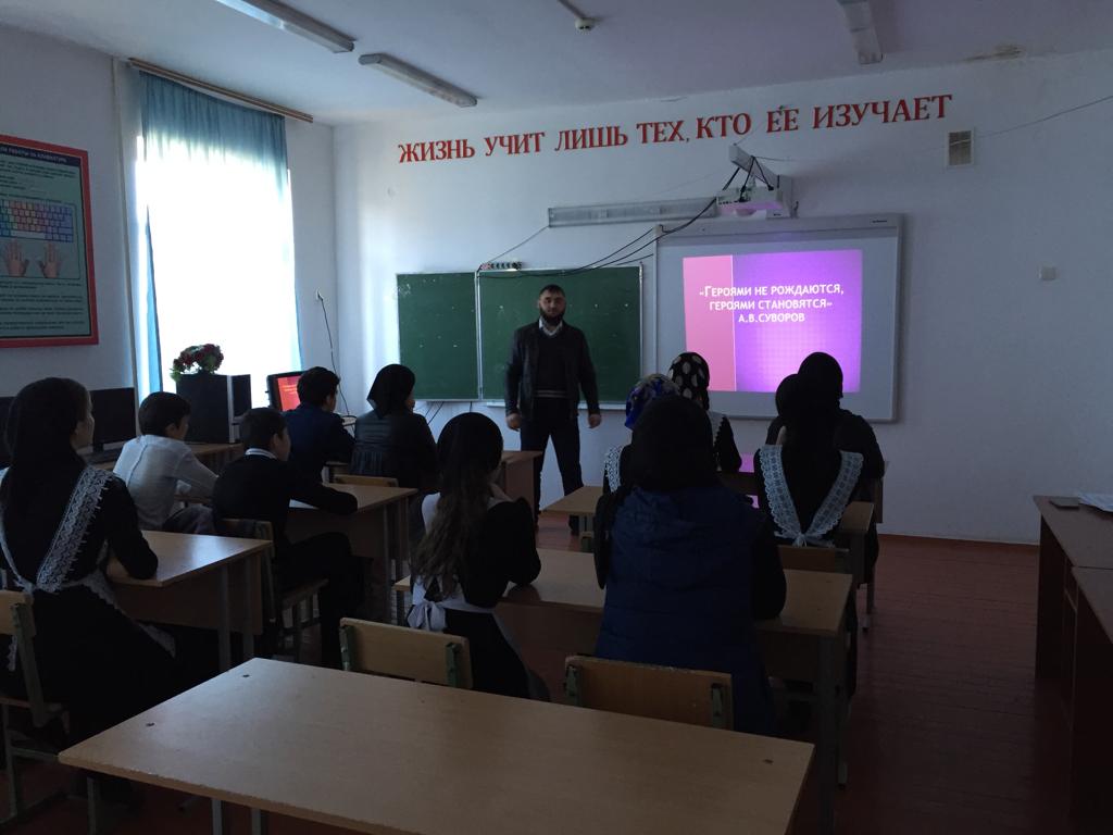 В 9 классе классный руководитель Далхаев А.Б. провел классный час «Герои Отечества»